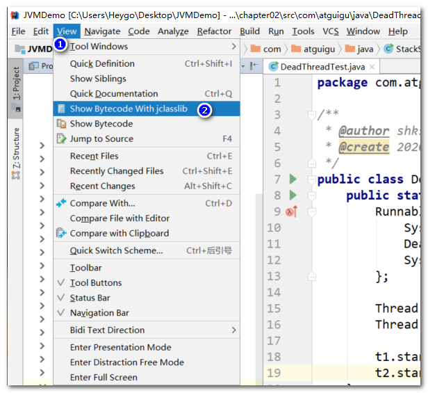 - 点击【View --> Show Bytecode With jclasslib】即可查看反编译后的代码
