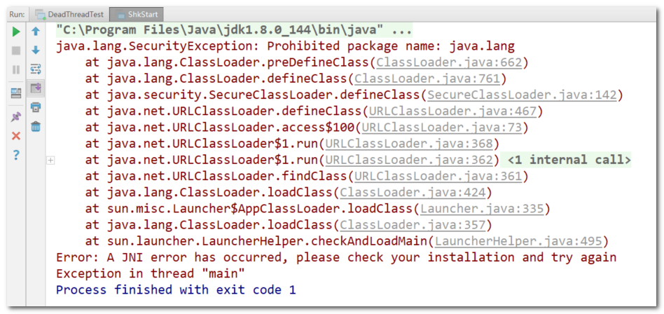 - 自定义类:java.lang.ShkStart(报错:阻止创建 java.lang开头的类)