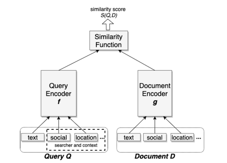 但Facebook的搜索和通常的信息检索不同的地方是除了要考虑文本信息外,还要考虑用户的个性化信息以及用户所处的上下文。因此,文章提出统一Embedding,将查询的query文本和搜索人及其所处上下文融合到一个embedding中。