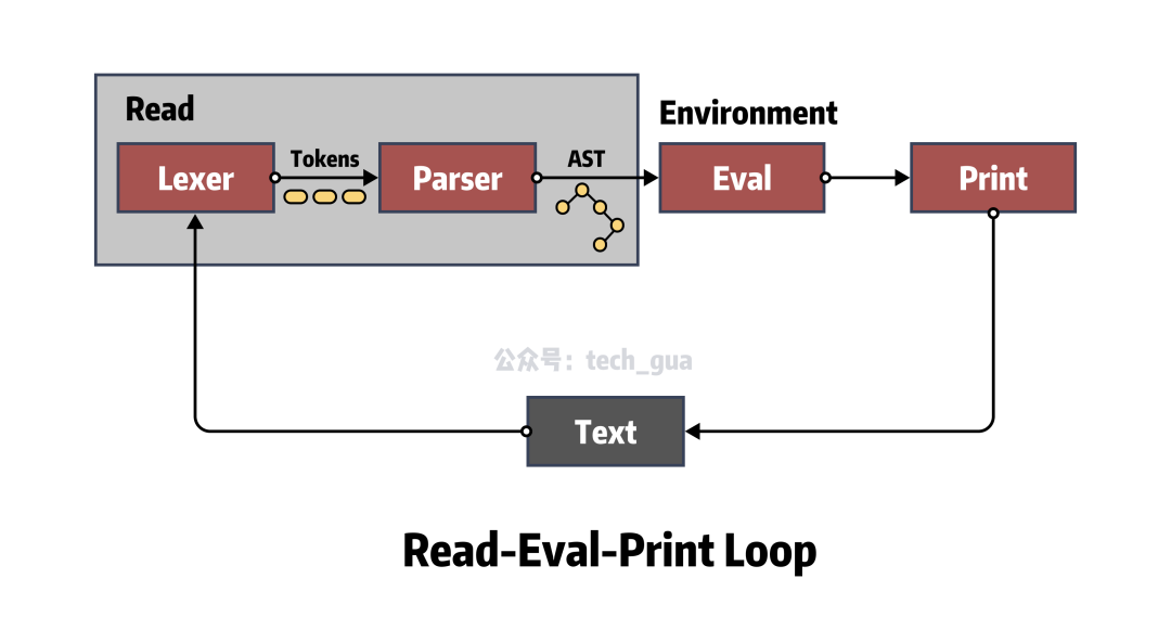 在 Lisp 的思想中,为了实现一个 Lisp REPL ,只需要实现这三个函数和一个轮循的函数即可。当然这里我们忽略掉复杂的求值函数,因为它就是一个解释器。