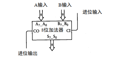 那为什么叫半加器?因为只能一位一位的加,而前一位的进位参与不到下一位的计算,如果要加入进位那下一位的运行就是 A 的当前位 + B 的当前位 + A 和 B 之前的进位。