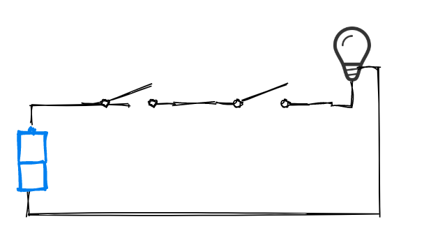让我们再回到之前的电池电灯图中,这次搞两个开关。