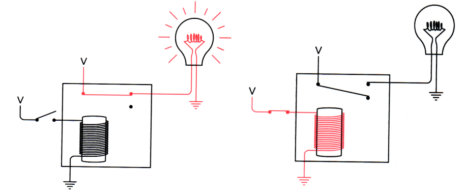 记得之前提到的继电器吗?它也能串联或者并联电路,而且可以被其他继电器联动控制,不需要一个一个拨动,因此用继电器来组合更加合适,而继电器的组合称之为逻辑门。