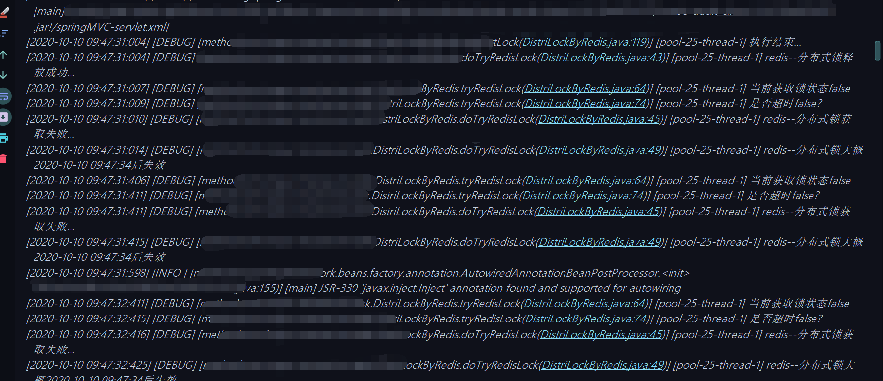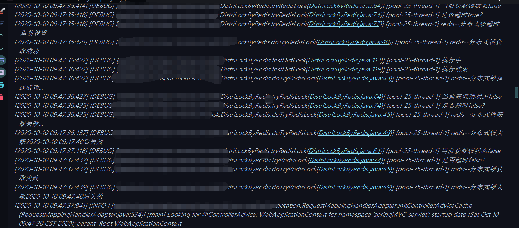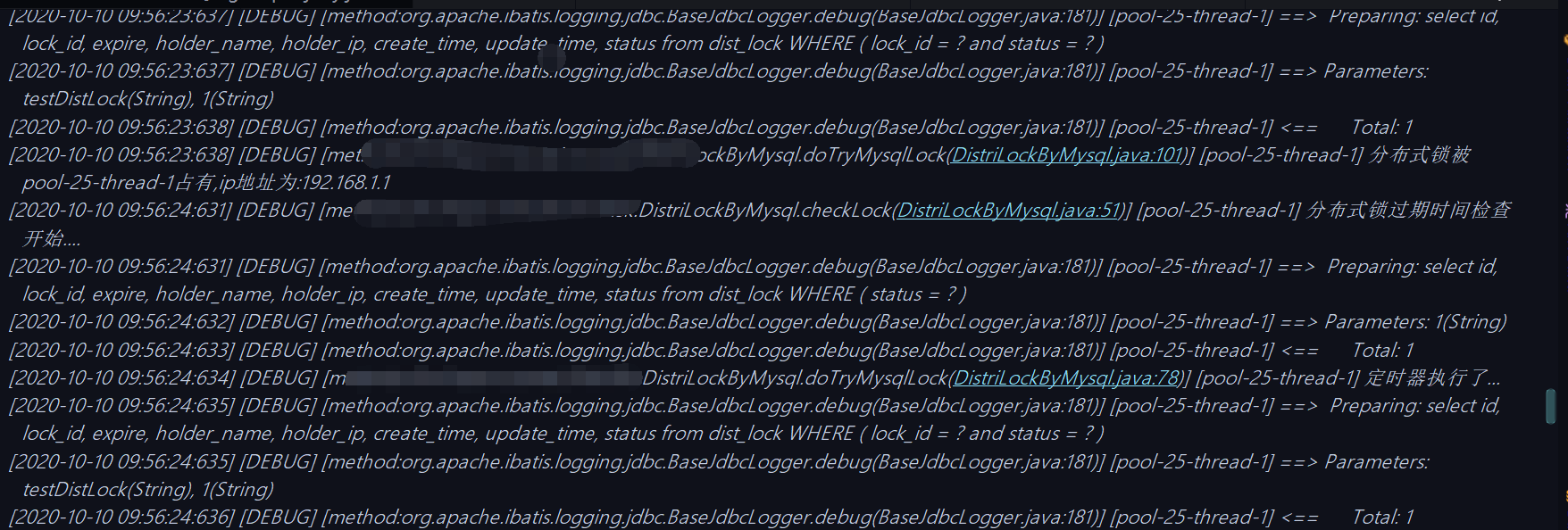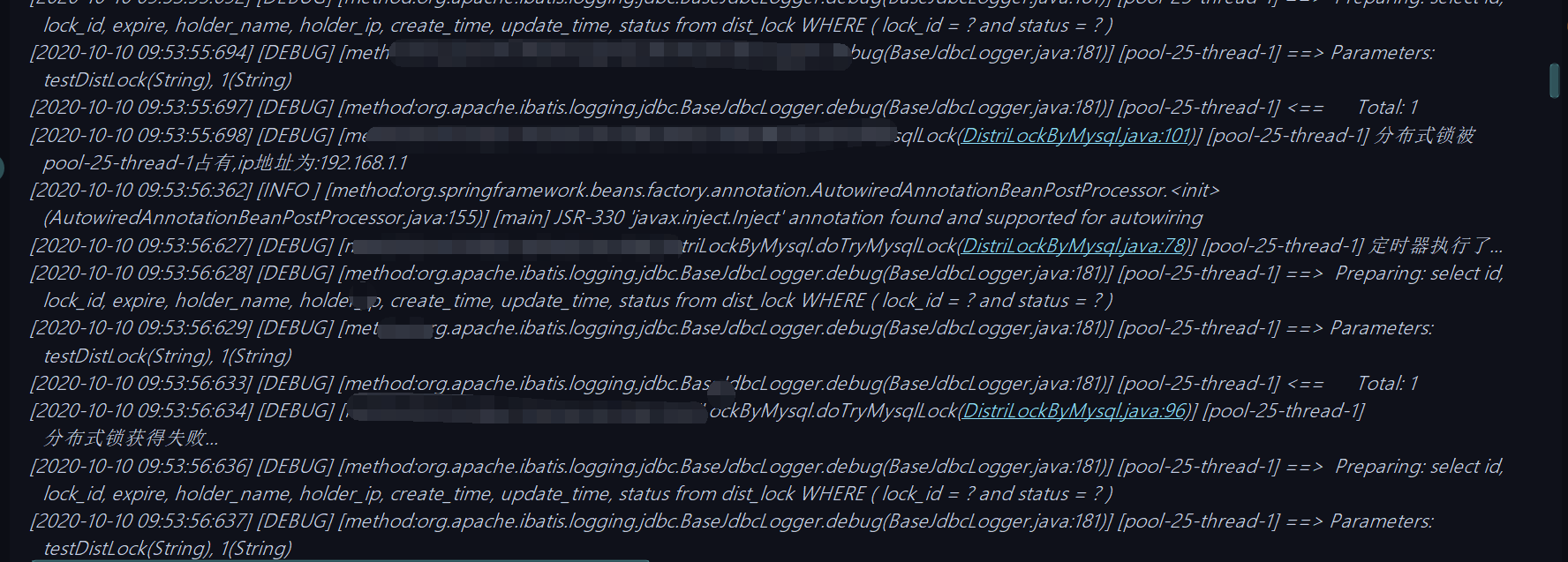 log.debug("分布式锁被{}占有,ip地址为:{}",distLock.getHolderName(),distLock.getHolderIp());
