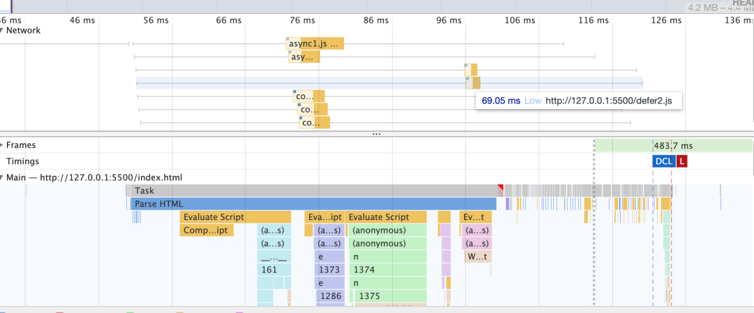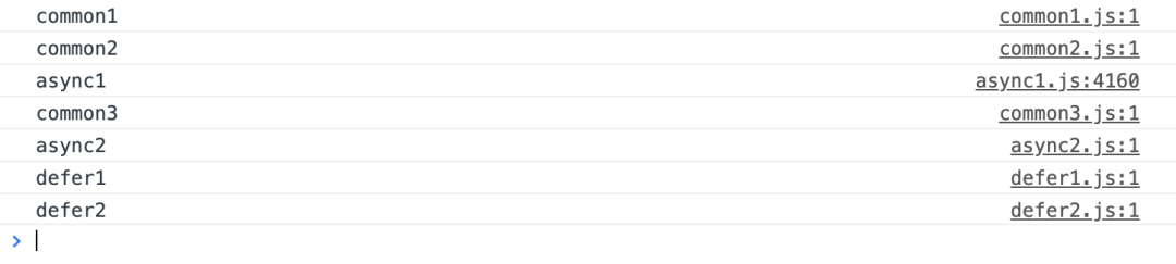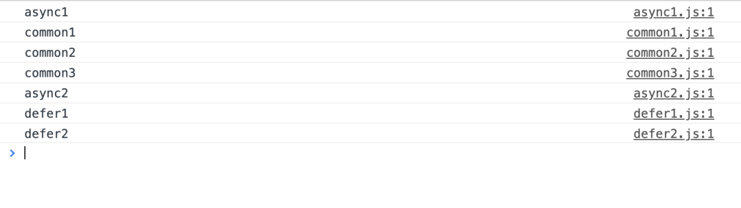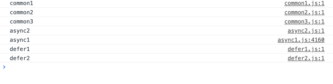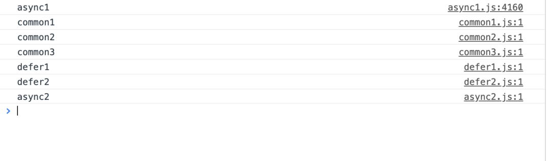 async和2个defer标签,其它的都是普通标签.其中async1.js里面有4000行代码,其它都是一个console.log而已 -
