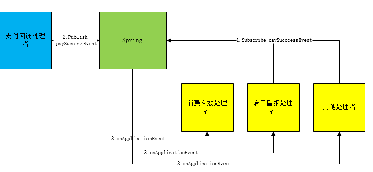 这样负责累加消费次数和负责语音播报的订阅者就会收到“支付成功事件”,进而做各自的业务逻辑。