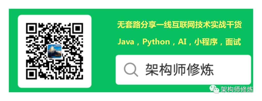 在公众号菜单中可自行获取专属架构视频资料,包括不限于 java架构、python系列、人工智能系列、架构系列,以及最新面试、小程序、大前端均无私奉献,你会感谢我的哈