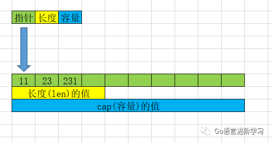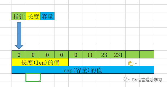 package mainimport "fmt"func main() {var names []int//地址:0x0,长度(len):0,容量(cap):0fmt.Printf("地址:%p,长度(len):%d,容量(cap):%d\n", names, len(names), cap(names))names = append(names, 1, 2, 3)//地址:0xc000010380,长度(len):3,容量(cap):4fmt.Printf("地址:%p,长度(len):%d,容量(cap):%d\n", names, len(names), cap(names))}
