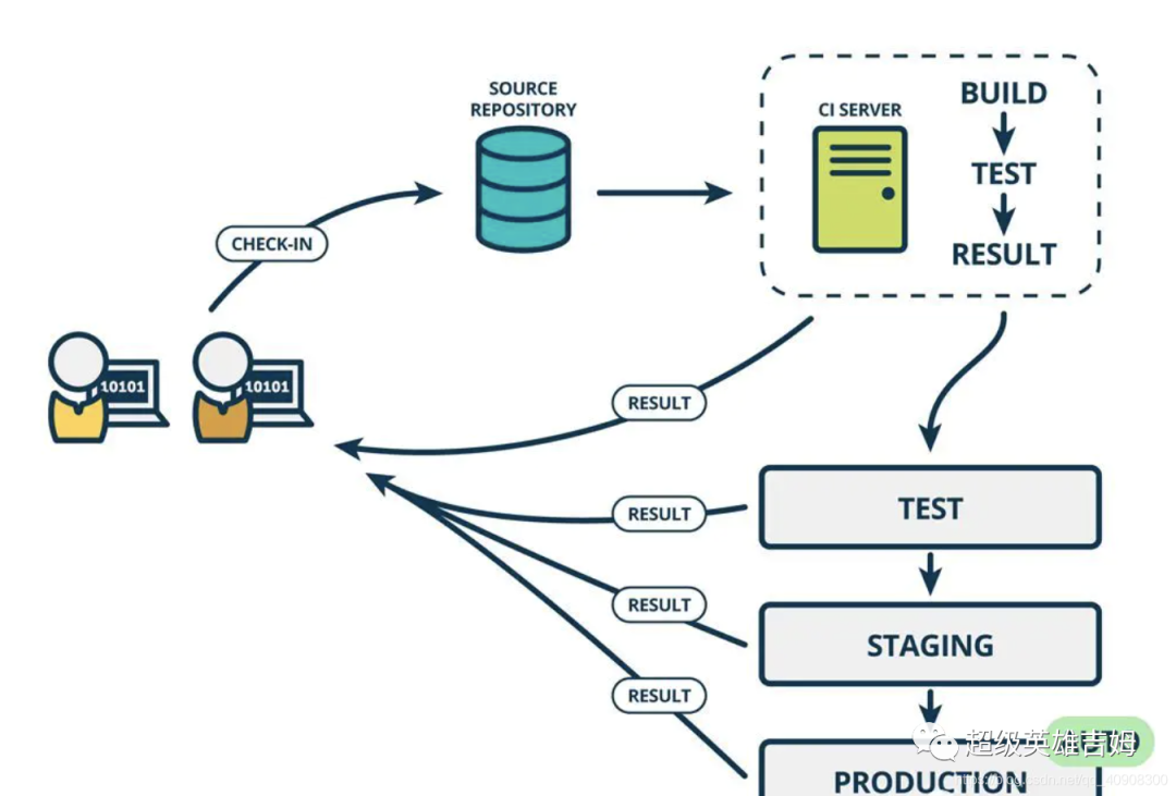开发人员通常使用一种叫做CI Server 的工具来做构建和集成。持续集成要求开发人员能够自测代码。分别测试各自代码来保证它能够正常工作,这些测试通常被称为单元测试(Unit tests)。