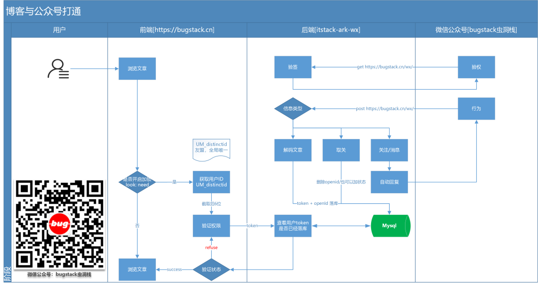 这个效果最终的结果就是用户在阅读文章时,可以引导用户关注公众号发送指定的编码进行解锁,解锁后允许用户阅读,流程如下;
