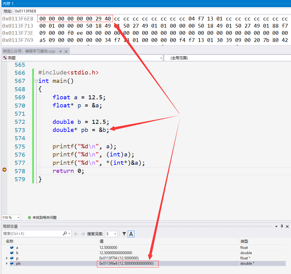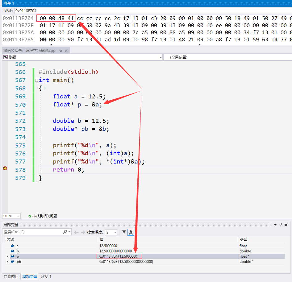 printf由于类型不匹配,所以,会把float直接转成double,double 8字节,12.5f转成十六进制:0x4029 0000 000 00000