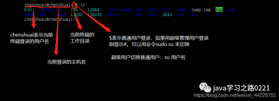 cd 路径: 切换当前工作目录到指定目录。cd /:切换到根目录cd ~:切换到当前用户的家目录cd ..: 返回上一级目录cd:切换到当前用户的家目录在这里插入图片描述