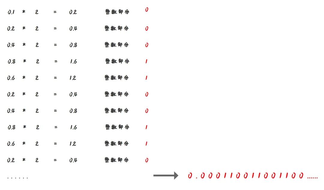 这种情况,计算机就没办法用二进制精确的表示0.1了。