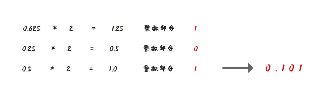 具体做法是:* 用2乘十进制小数,可以得到积 * 将积的整数部分取出,再用2乘余下的小数部分,又得到一个积 * 再将积的整数部分取出,如此进行,直到积中的小数部分为零,此时0或1为二进制的最后一位。或者达到所要求的精度为止。