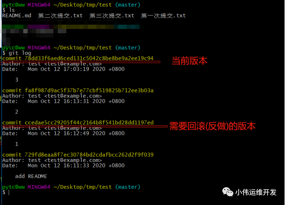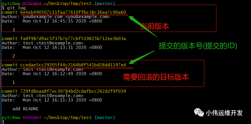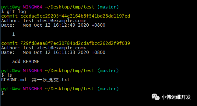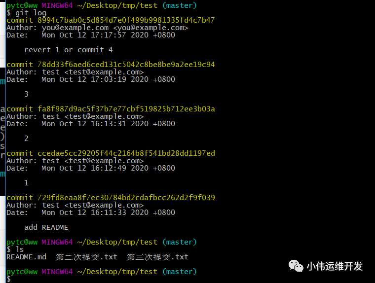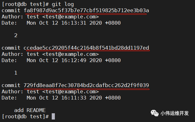[root@db test]# git log # 再次查看所有提交信息发现回滚成功