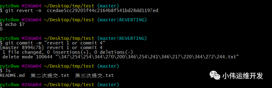 ②.使用“git revert -n 版本号”反做,并使用“git commit -m 版本名”提交: