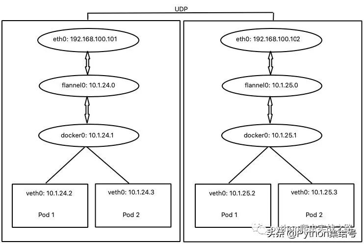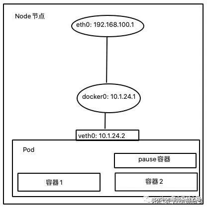 同一个 Node 上的 Pod 使用的都是相同的网桥( docker0 )进行连接,相当于 Docker 的网络空间,只不过是以 Pod 为基础。每个 Pod 都有一个全局 IP 地址,同一个 Node 内不同 Pod 之间通过 veth 连接在同一个 docker0 网桥上,其 IP 地址都是从 docker0 网桥上动态获取的,并且关联在同一个 docker0 网桥上,地址段也相同,所以它们之间能直接通信。