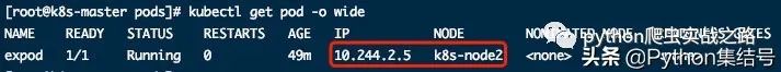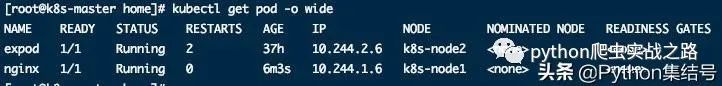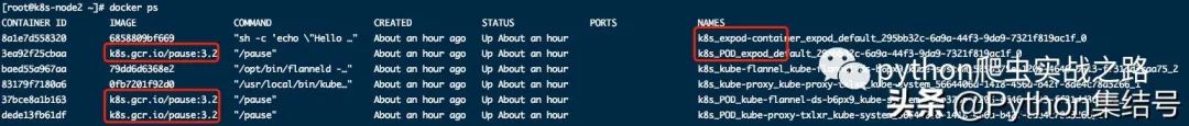 可以看到有三个 pause 容器,其中两个是 flannel 和 proxy 容器,还有一个是我们的 expod 的容器,它与另一个 expod 容器共同组成了一个 Pod。
