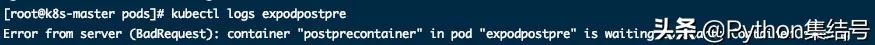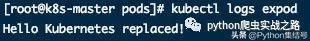 先删除了 expod 这个 Pod,然后创建一个替换的 expod 的 Pod,我们再查看一下 Pod 的日志。
