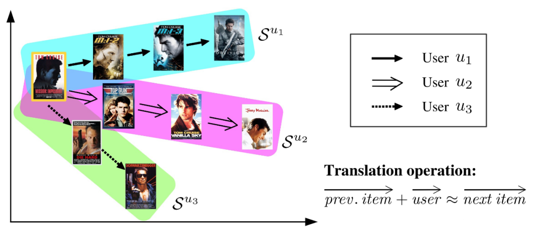 Translation-based推荐在序列建模中引入Metric Learning (把行为关系和高维空间距离映射起来),用户