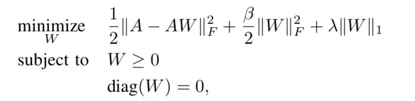 非负体现了相似度的物理意义;对角线限制为0避免对角线全都学习到1完美过拟合;添加L1正则产生稀疏的