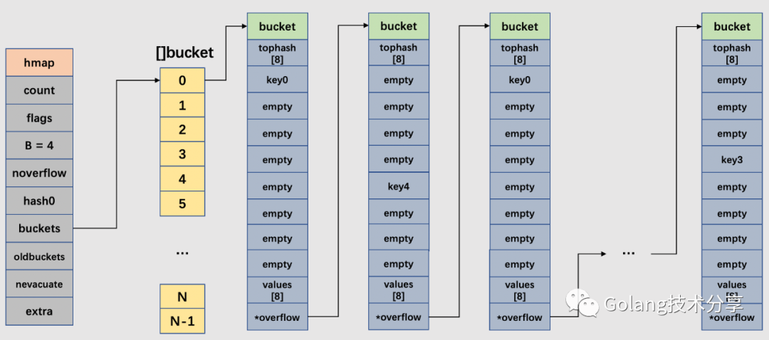 6 // 都放在 hmap.extra.overflow 和 hmap.extra.oldoverflow 中了