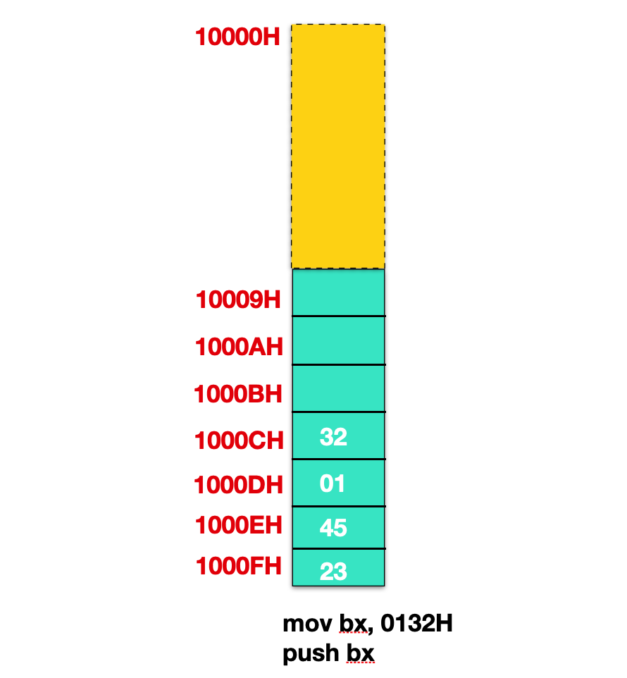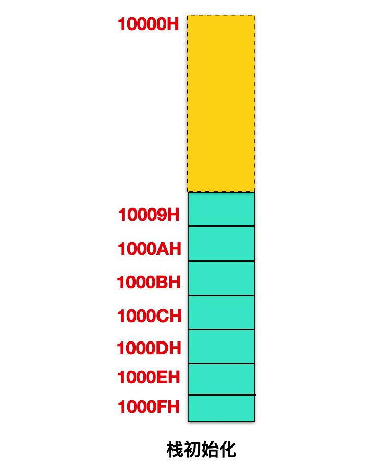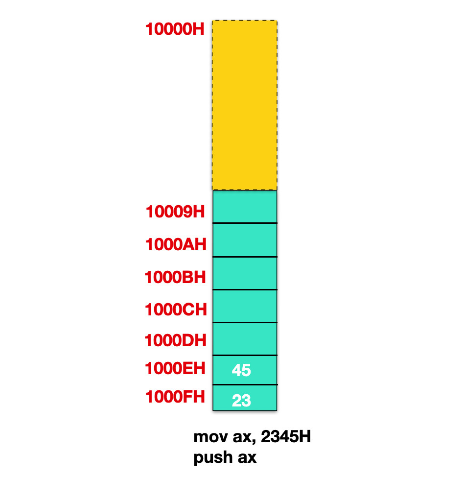 而当使用 「PUSH」 指令向栈中压入 2 个字节的字单元时,SP = SP – 2 ;即栈顶元素也要发生变化;