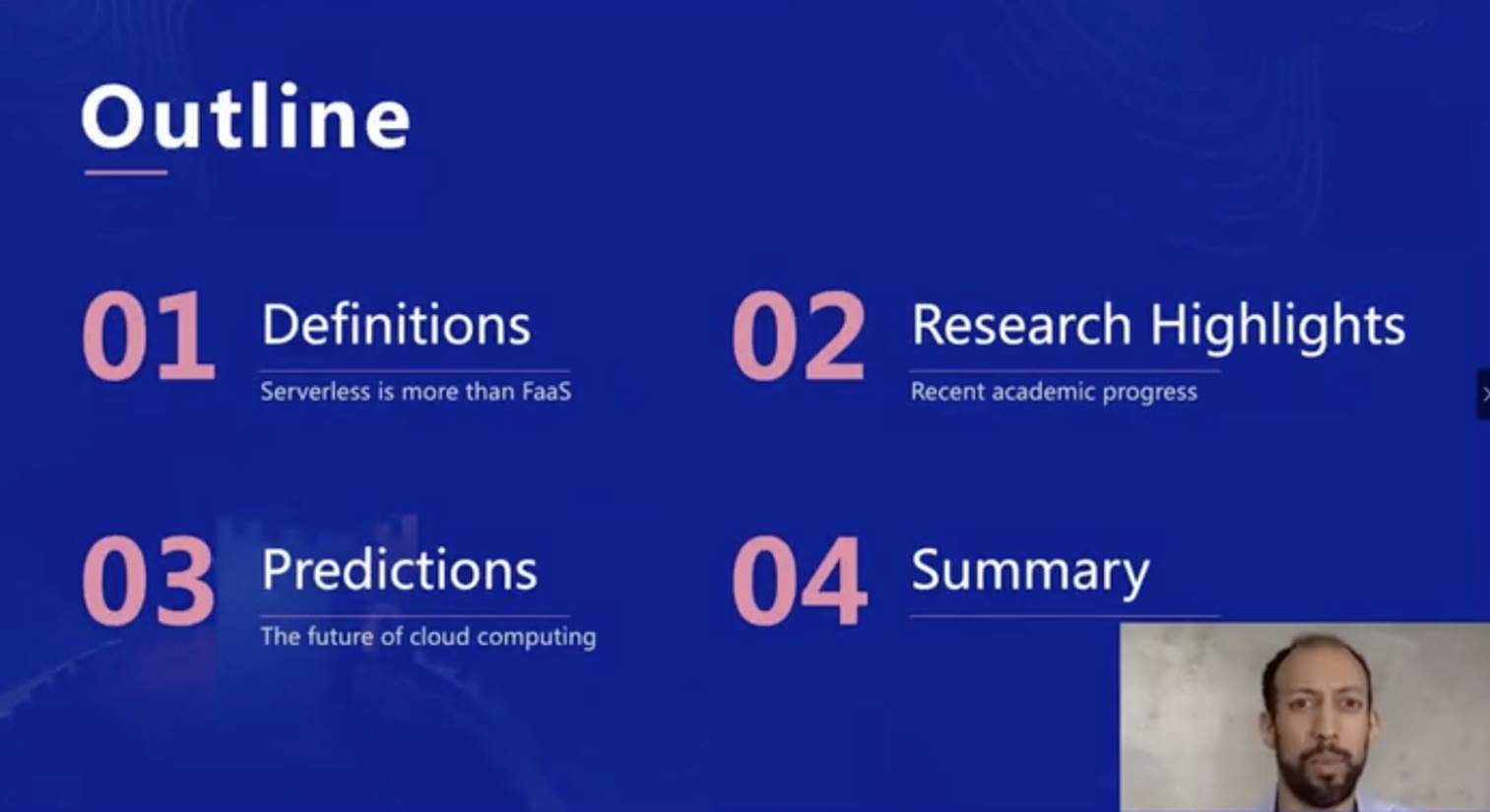 本次演讲主要分为四个部分:首先阐述 UC Berkeley 怎样来定义 Serverless ,之后会分享一些近期的研究成果和进展,最后提出对云计算未来的一些预测和设想。