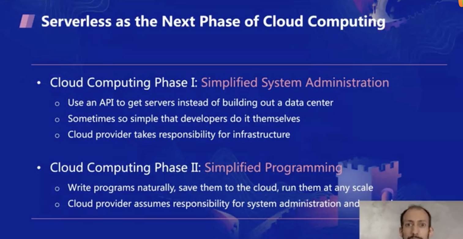 因此,在 Berkeley 我们认为 Serverless 是云计算的下一个阶段,不仅因为弹性伸缩和按需付费的特点,还有个重要原因是,我们认为 Serverless 改变了人和电脑协作的方式。