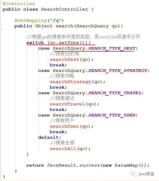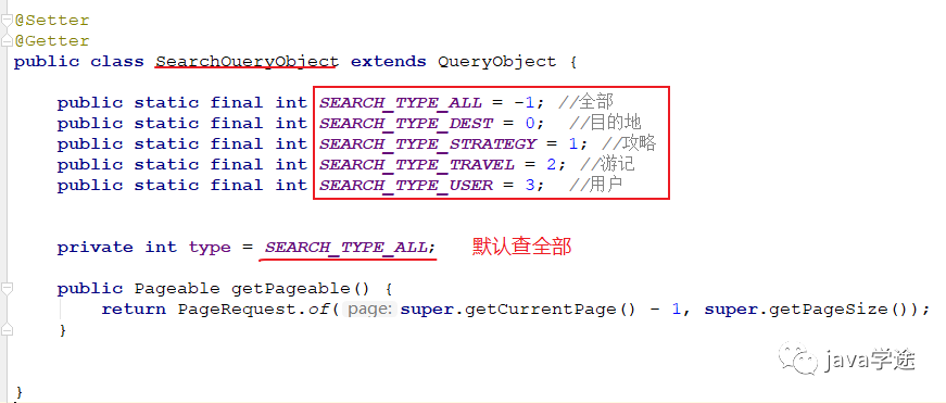高查条件的封装,后面要用于分页,根据前台以int类型来区分集中不同的搜索目标来设计qo: