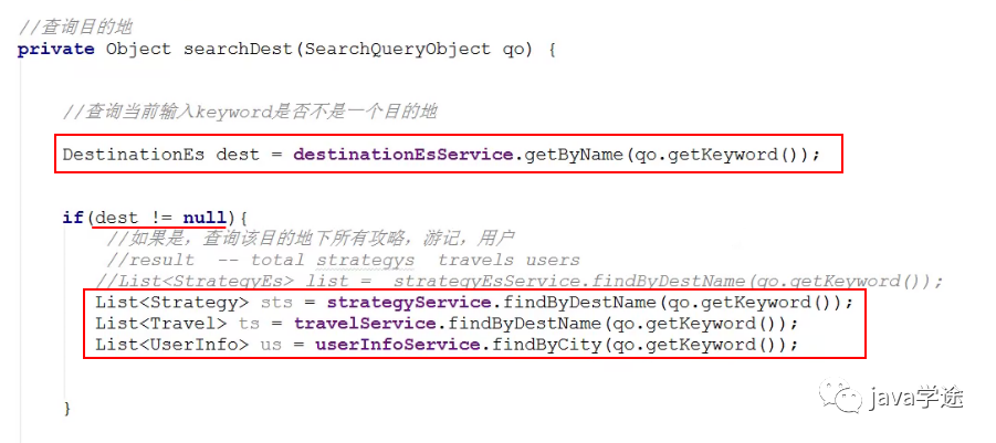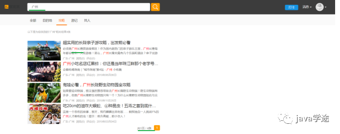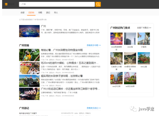 目的查询:输入关键词是精确查询输入的地区, 如果找到, 显示该目的地下所有攻略, 游记, 用户