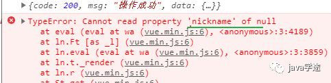 报错:找不到用户昵称,查看数据有没有到后天,查看前台有没有按要求封装数据;