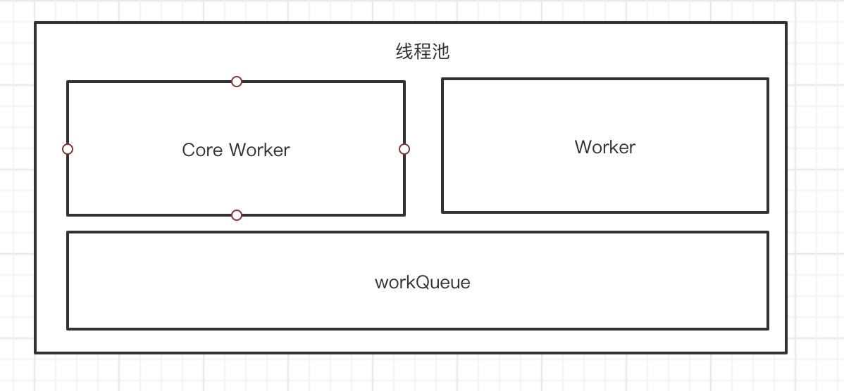 整理了一张图,把线程池分为三部分Core Worker、Worker、workQueue:
