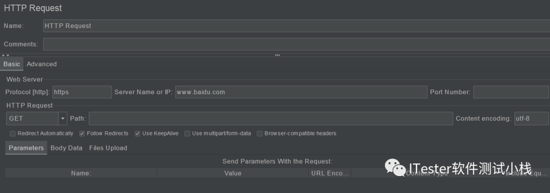 ②添加一个HTTP Request,压测地址为:www.baidu.com。