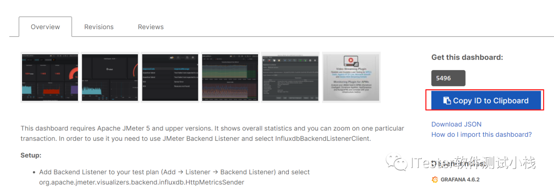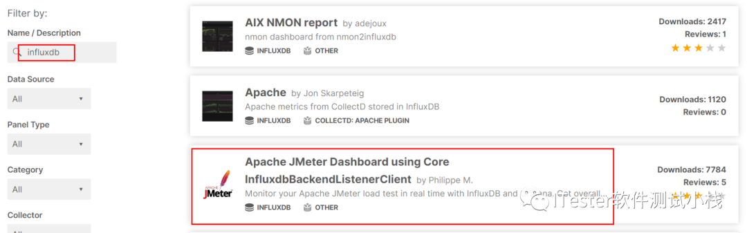①InfluxDB Jmeter模板下载地址:https://grafana.com/grafana/dashboards?search=influxdb