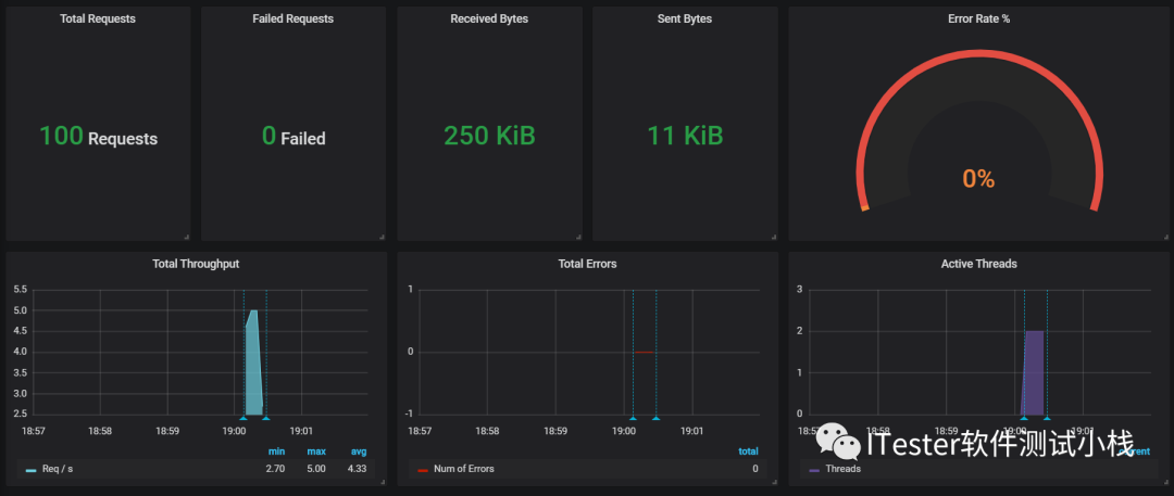 至此,整个Jmeter+Grafana+InfluxDB就搭建完成了,等着老板加鸡腿吧。