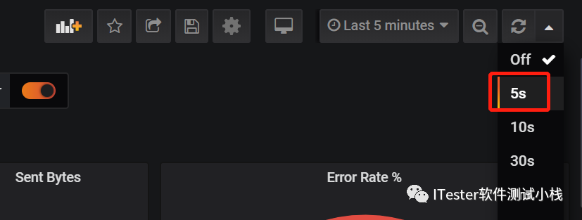 ⑦在页面右上角,下拉选择5s,即每5s更新一次。