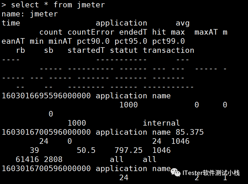 ④配置完后运行一下Jmeter脚本,再去influxdb的jmeter数据库中查看是否有数据,有数据即配置成功。
