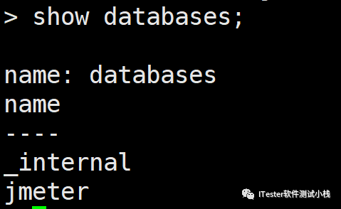 ①InfluxDB中创建数据库,使用命令:create database 数据库名。如下,创建一个名称为jmeter的数据库:create database jmeter。