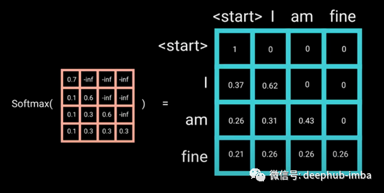 现在当我们计算隐藏分数的softmax时,负无穷被归零,留下零的注意力分数给序列中所有未来的记号。