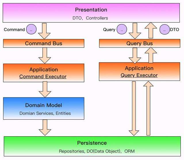 1)展现层(Presentation Layer):负责以 Rest 的格式接受 Web 请求,然后将请求路由给 Application 层执行,并返回视图模型(View Model),其载体通常是 DTO(Data Transfer Object);
