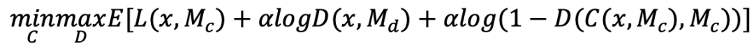 鉴别器网络使用GAN损失函数,其目标是最大化生成图像和原始图像的相似概率,表达式如下所示:
