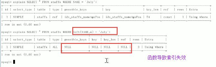 以下用法会导致索引失效