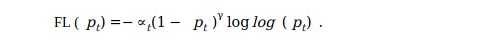 1- pt代表交叉熵损失,可调聚焦参数≥0。 RetinaNet物体检测方法使用焦距损失的α平衡变体,其中α= 0.25,γ= 2效果最佳。