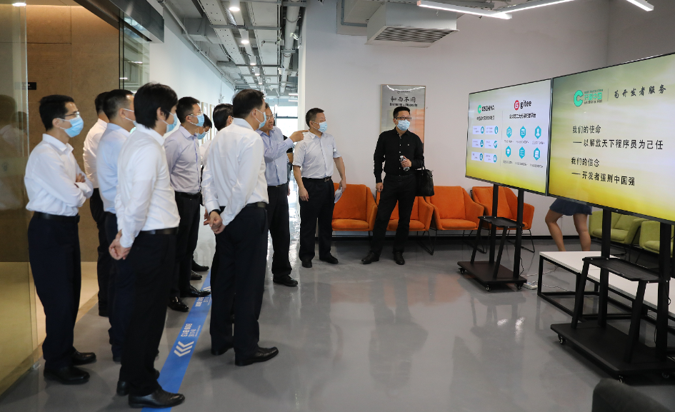 同天,领导们莅临位于深圳国际开源谷的开源中国新办公室,亲切慰问及了解我们的工作与发展情况: