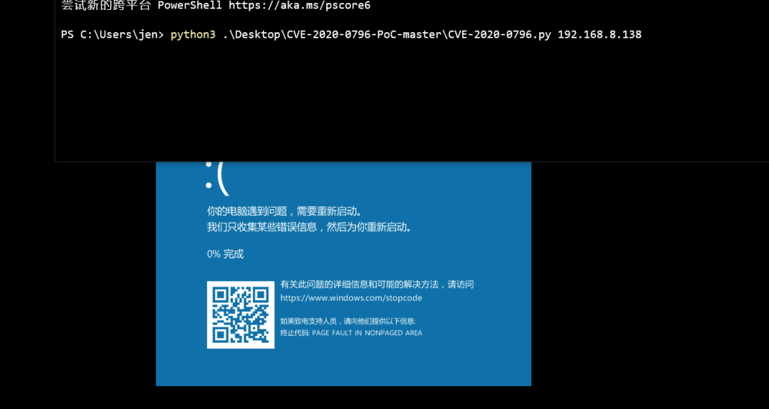 蓝屏的POC。这个POC可以把由这个漏洞的windows10系统打到蓝屏