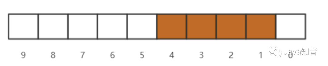 当我们存储了多个数字的时候,例如说存储了4,3,2,1的时候,那么位图结构就会如下所示: