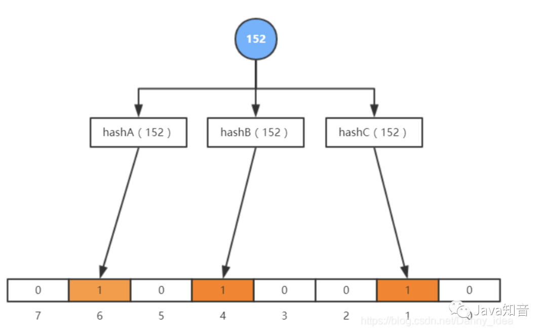 但是这样子还是会有相应的弊端,例如说hash冲突。那么这个时候如果我们采用多个hash函数来进行处理的话,理论上是可以大大降低冲突的概率的。于是就有了下边所说的布隆过滤器一说。