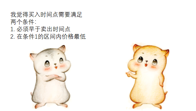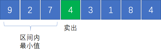 我们要选择价格4之前的区间,且必须是区间内最小值,显然,这个最佳的选择是价格2的时间点。