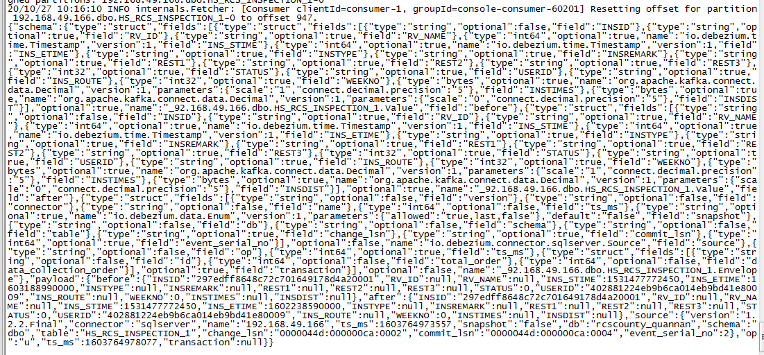 Debezium 传递的数据库变动,新增\修改\删除\模式更改的json都有所不同,具体详情请看用于SQL Server的Debezium连接器.